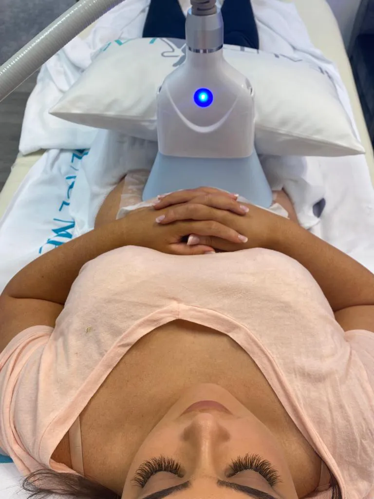 Our Thermoshock Lipolysis Technology helps to permanently eliminate up to 30% of stubborn fat in the treated area after just three sessions. By utilizing specific temperatures, we are able to cause the end result of Apoptosis of the Fat cells.